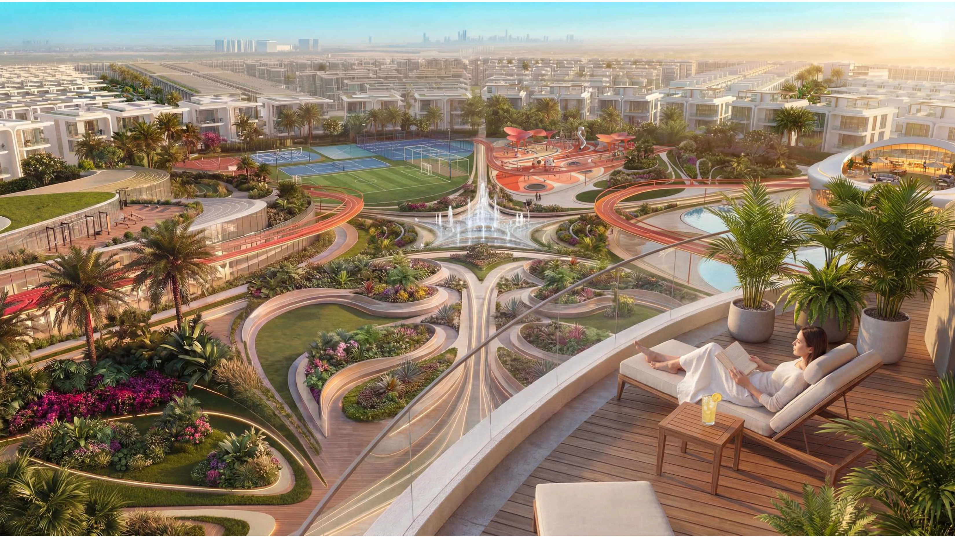 Greenz by Danube is Dubai's most anticipated villa and townhouse neighborhood, completely furnished with fine Italian Dolce Vita furniture. Greenz, with its own elevators, sky gardens, a 3.75KM jogging track, and lush green environs, redefines sustainable luxury living.